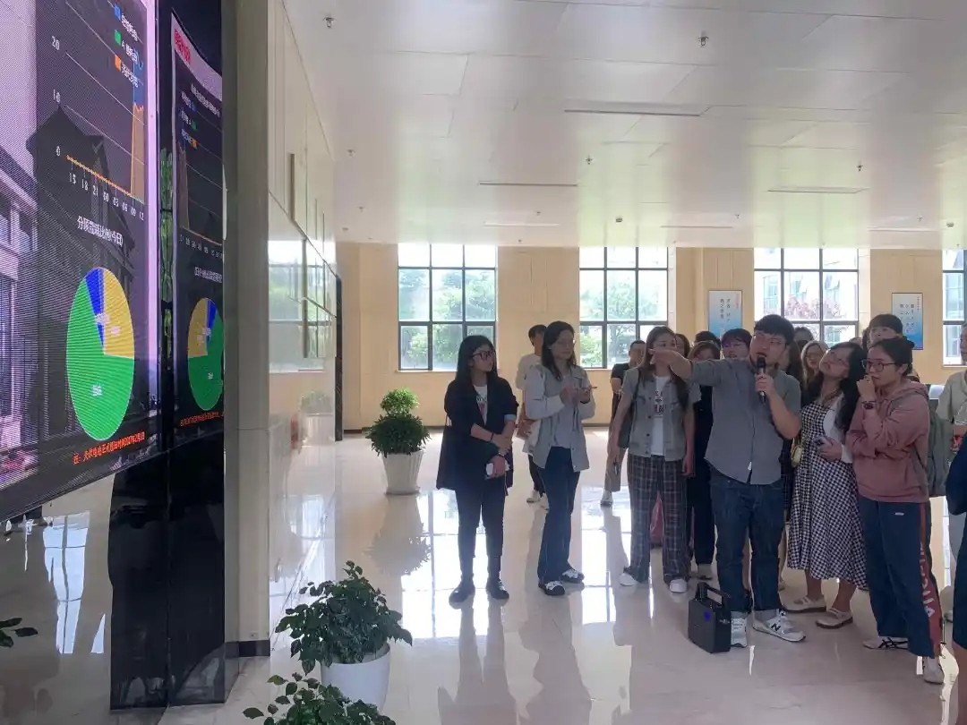 師生一行在鄭勇梁的帶領下先后參觀了源牌科技零能耗樓、低碳科技成果展示廳、黨建基地等地,對源牌科技核心產品(綜合能源設備:高效蓄冰盤管/水蓄能裝置/電極鍋爐、智能儀表:電磁流量計/熱量表/水表、變風量末端裝置)及一體化解決方案有了一定了解,對“如何高效蓄能降碳”有了具象化概念。