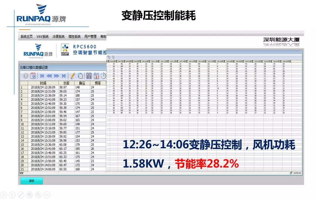 接著,專家組成員結合項目現場運行情況及匯報內容進行了充分討論,一致認為大廈辦公區域內溫濕度、噪音的控制、室內空氣健康度指標等方面均達到了設計目標;源牌VAV末端及控制系統的控制精度高、響應快、噪聲低、阻力小; BA系統采用西門子PLC控制器,穩定可靠,程序標準化、操作運行方便;采用基于閥門開度加權平均的智能模糊變靜壓技術,相對于定靜壓控制技術,節能20%以上;自控系統采用開放軟件平臺、遠程數據監控和專家診斷等技術,結合“產品+服務”模式,提高了調試效率,縮短了實施周期。深圳能源大廈的變風量空調及控制系統的技術水平和實際運行效果處于行業領先地位。