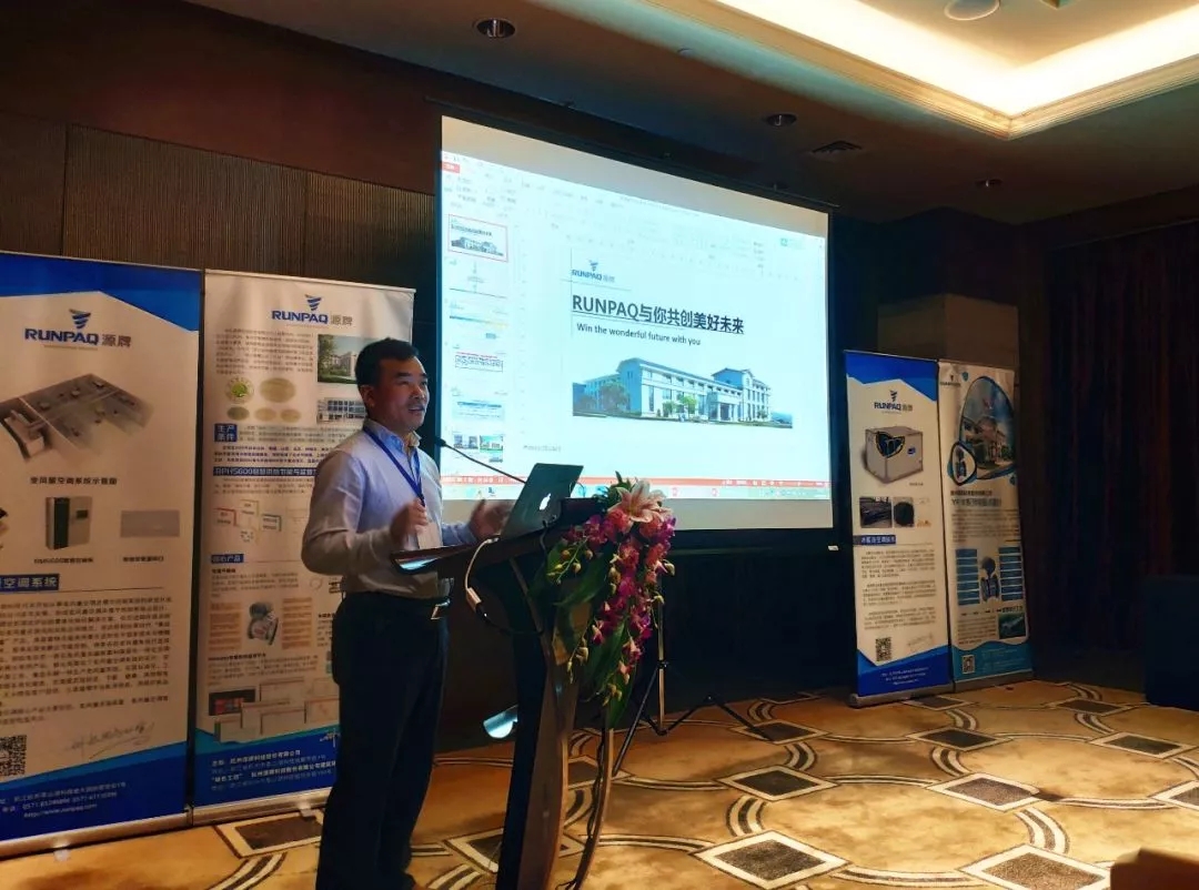 張勁松代表源牌科技向出席會議的專家們表達了感謝,并做了《RUNPAQ與你共創美好未來》的主題報告:源牌基于智慧低碳能源技術,自主創新納米復合盤管蓄冰裝置、變風量末端裝置、智慧能源監控(電磁流量計、熱量表)等核心產品和一體化解決方案,利用物聯網技術創建中央空調專業服務平臺,為客戶提供健康、舒適、節能的人居環境。