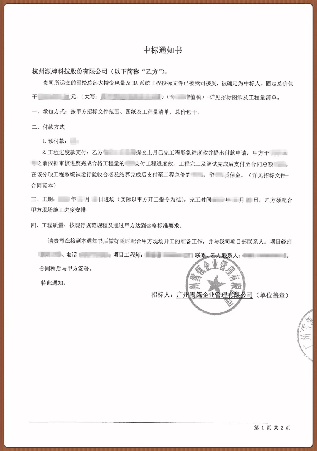 中標(biāo)通知書