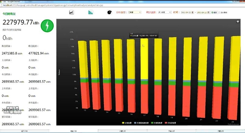 統(tǒng)、給排水、用氣(汽)點(diǎn)、耗煤、耗油等進(jìn)行節(jié)能診斷及分析得出各種形式的報(bào)表和圖表,并通過數(shù)據(jù)庫進(jìn)行對比,即可做出較為科學(xué)的各類能源使用報(bào)告,達(dá)到